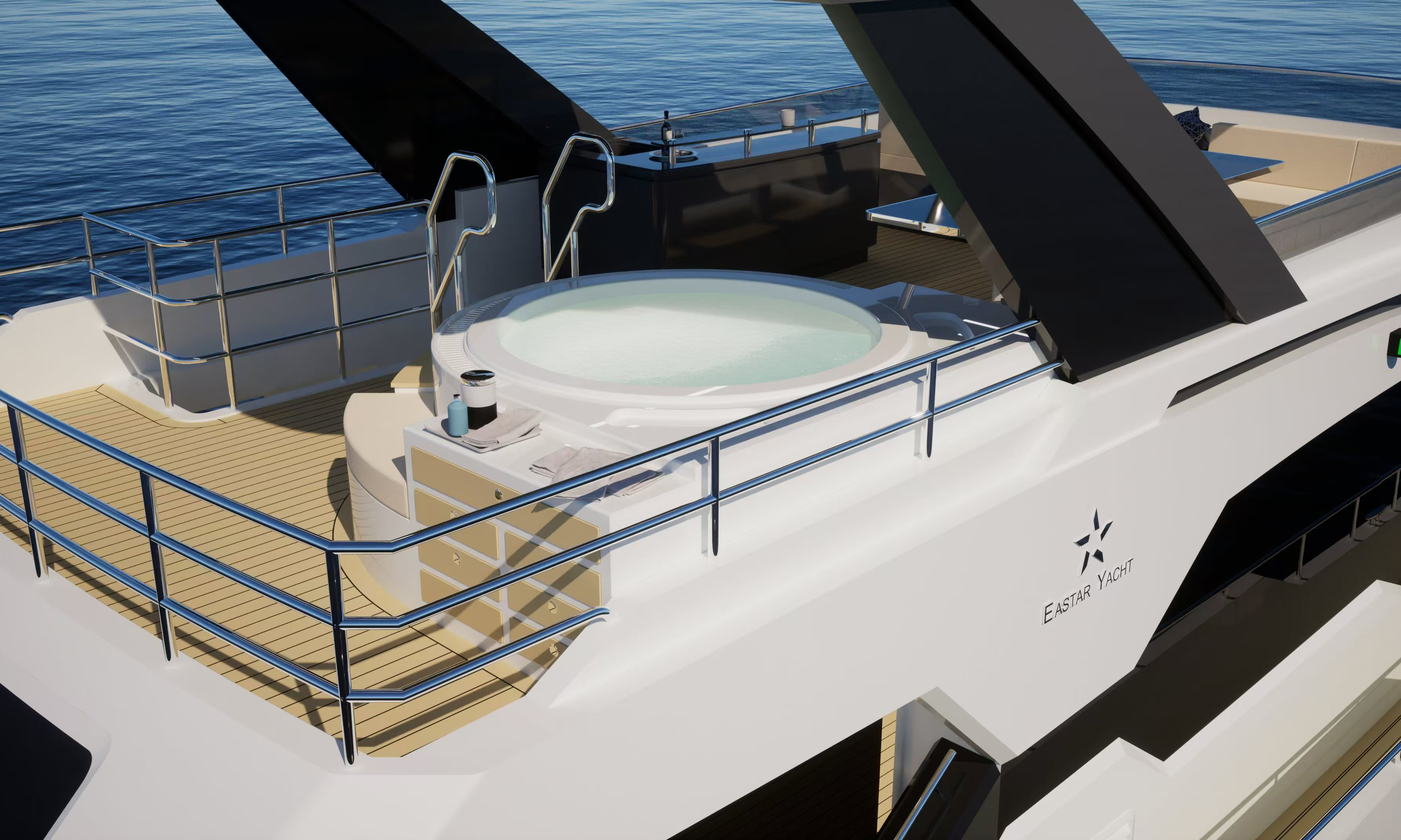 布局完美的飛橋甲板設(shè)計(jì),配置戶外浴缸,私密專屬,于海天之間盡情釋放身心。