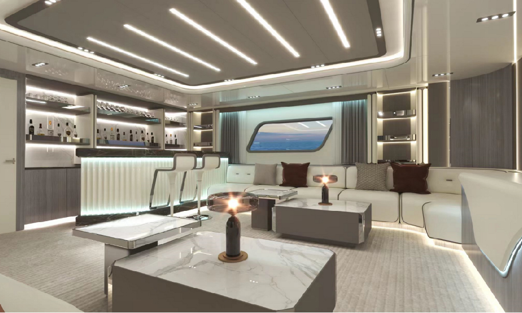 下甲板多功能廳,滿足美學(xué)和時(shí)尚的藝術(shù)理念,各種布局完美的局部設(shè)計(jì),更加增強(qiáng)了該艇外觀的現(xiàn)代型風(fēng)格。