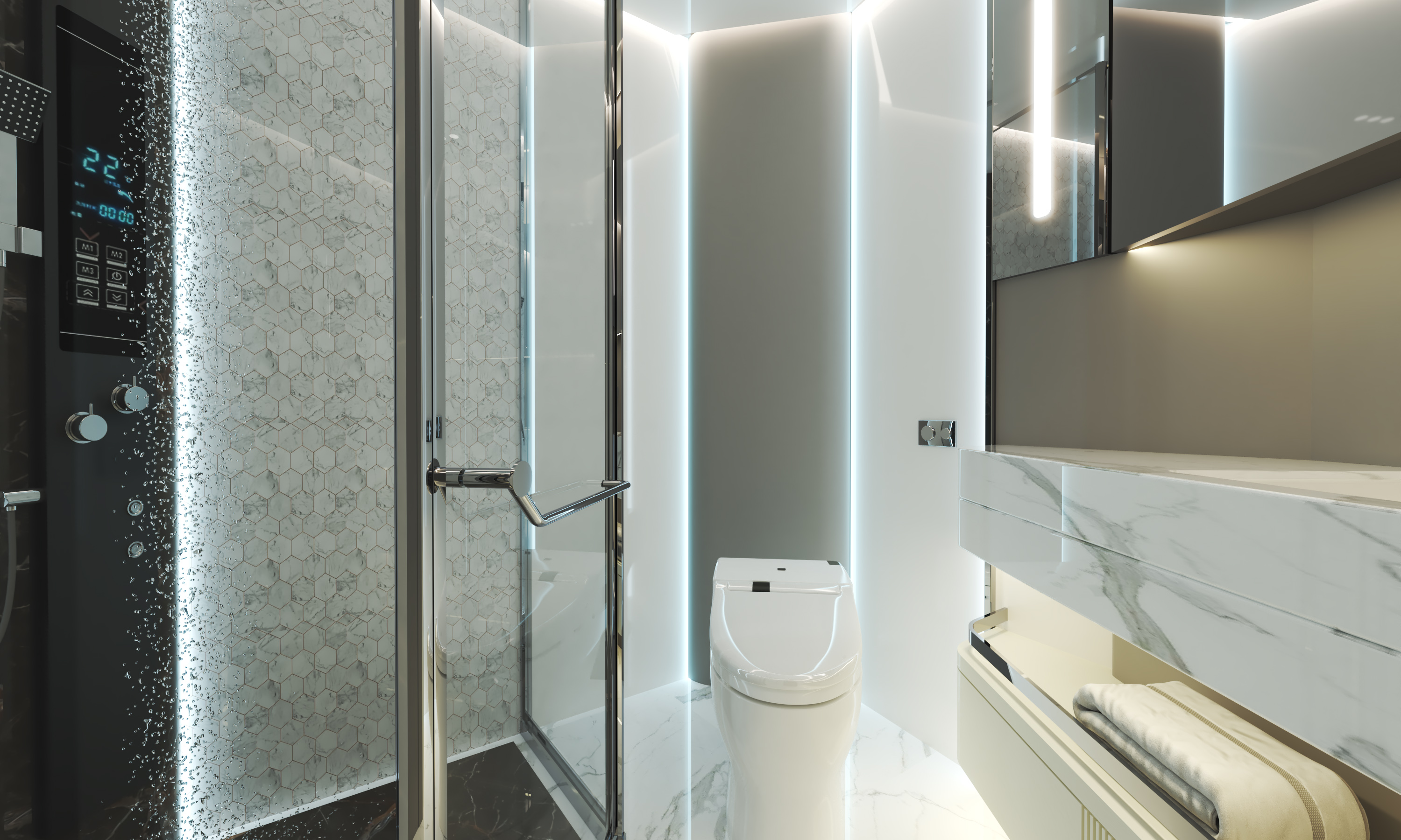 寬敞明亮的衛(wèi)浴間,精裝設(shè)計(jì),完美動(dòng)線,暢飲暢聊后清爽淋浴,然后酣然入睡。