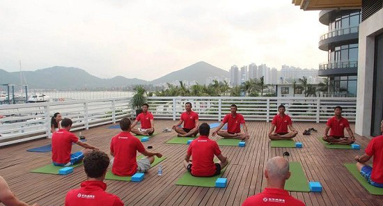 夏爾與船員一起在三亞練習(xí)瑜伽