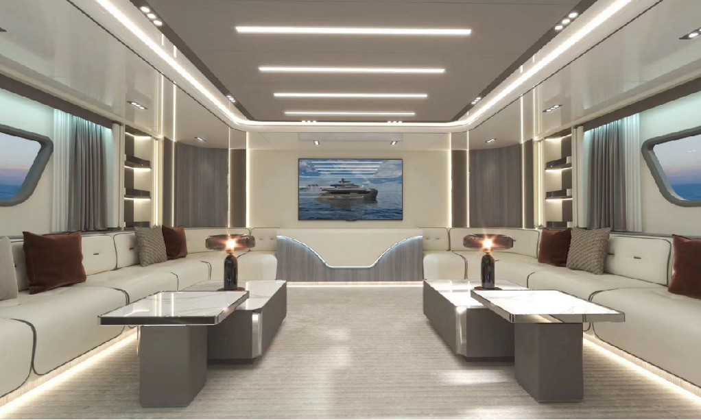 下甲板多功能廳,滿足美學(xué)和時(shí)尚的藝術(shù)理念,各種布局完美的局部設(shè)計(jì),更加增強(qiáng)了該艇外觀的現(xiàn)代型風(fēng)格。